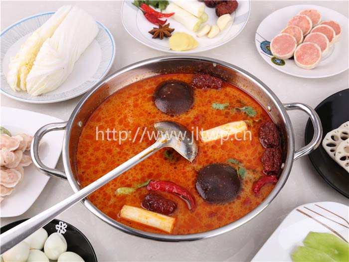 鍋內(nèi)加水,煮沸后加入金鑼清油火鍋底料、金鑼原汁豬骨高湯等主料,攪勻再次煮沸后保持沸騰5分鐘即成麻辣鍋底,加入食材即可涮鍋。