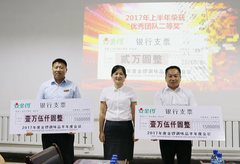 會上,各辦事處經理分別就2017年上半年銷售業績、渠道開發達成進行了總結匯報,杜總對各辦事處目前存在問題進行一一點評; 隨后,對根據調味品事業部銷售激勵方案評選出的團隊、成長貢獻人員進行了表彰獎勵;杜總要求所有人員要向先進人員學習,平時工作中腳踏實地、戒驕戒躁、奮力前進、再創佳績;最后杜總通報了調味品事業部2017年上半年的生產、銷售、成本、利潤等各項經營指標的完成情況,明確指出了事業部在發展中存在的問題及改進方向,同時對各項工作的開展做出了重點部署,要求各單位在下半年要再接再厲、開拓進取,出色完成集團公司下達給事業部的各項任務。